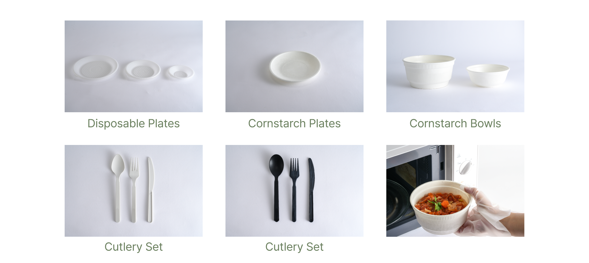 High-quality biodegradable plates, bowls, and cutlery designed to